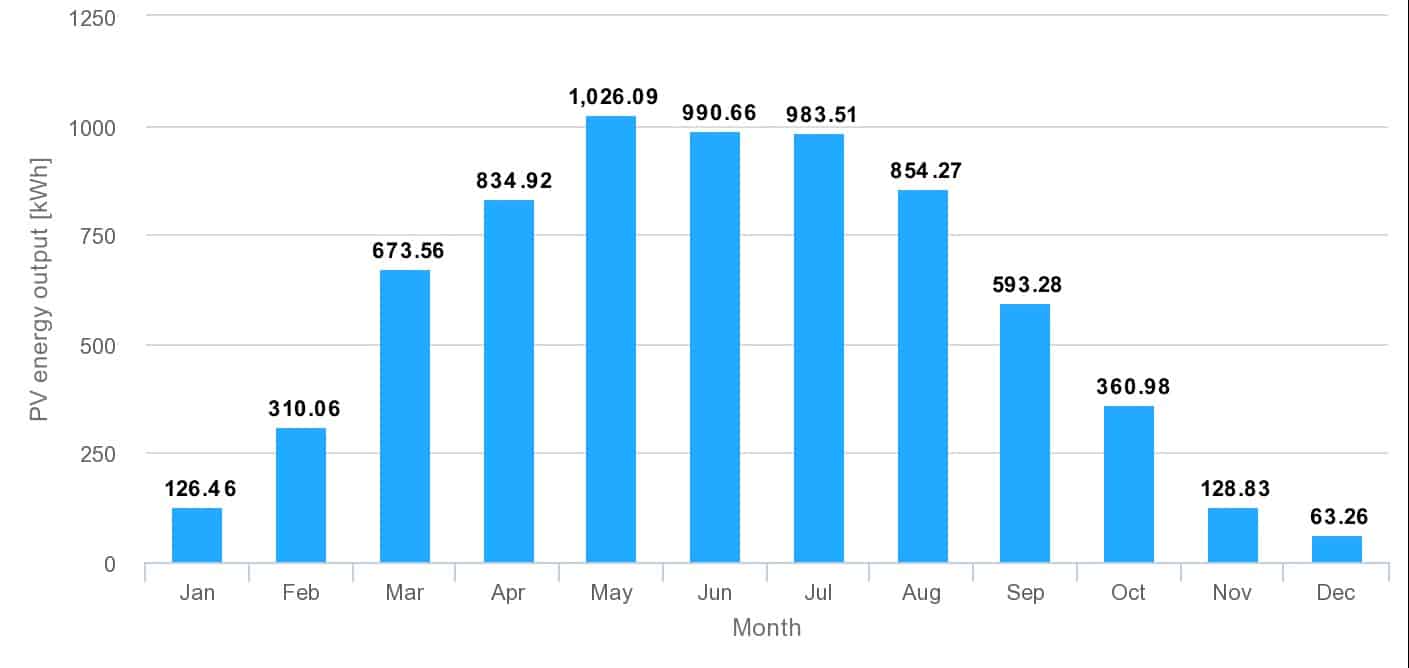 Aurinkopaneelit tuottavat sähköä myös talvella, mutta pimeimpään aikaan tuotanto jää vähäiseksi. Kokonaisuudessaan meillä on 8 hyvää kuukautta vuoden aikana ja aurinkoenergiaa tuotetaan kuitenkin yhtä tehokkaasti kuin muuallakin Euroopassa.
